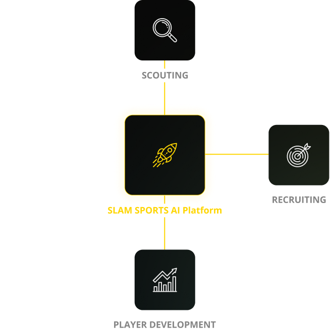 SLAM SPORTS AI solves the critical data silos that hinder holistic athlete development through its four core pillars: